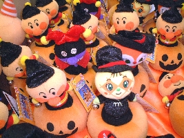 ハロウィーンの仮装をした「きらりちゃん」に「なーさん」のぬいぐるみと、