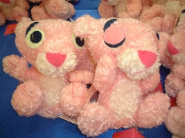 可愛くデフォルメされたピンクパンサーのぬいぐるみです。