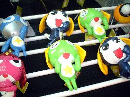 「ケロロ」、「タママ」、「ギロロ」、「クルル」、「ドロロ」全5種勢揃いであります!!